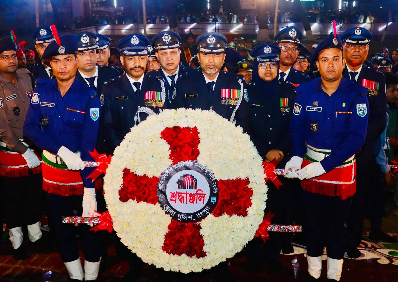 মহান একুশের প্রথম প্রহরে কেন্দ্রীয় শহিদ মিনারে জেলা পুলিশ, রংপুর এর শ্...